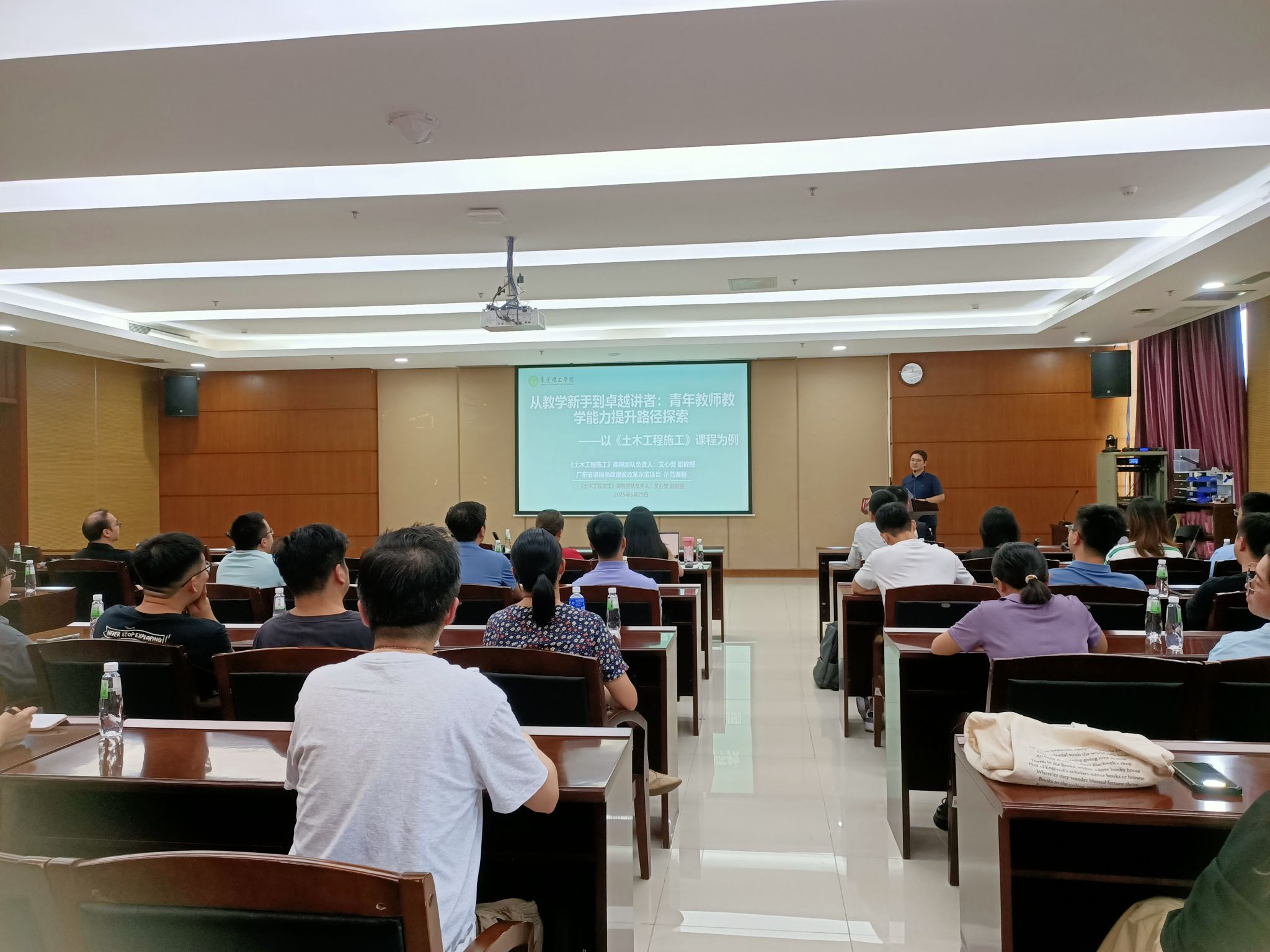25日,邀请学校环建学院土木工程系主任艾心荧副教授分享了以“青年教师教学能力提升路径探索”为主题的专题讲座,艾心荧从青年教师如何站稳讲台、青年教师如何开展课程建设以及全国高校教师教学创新大赛经验分享等三方面分享了自身的经验和参赛体会。艾心荧的分享得到了与会老师的共鸣,在自由交流环节,青年教师围绕自己在教学上遇到的难点、痛点问题,与艾心荧展开交流,现场气氛热烈。