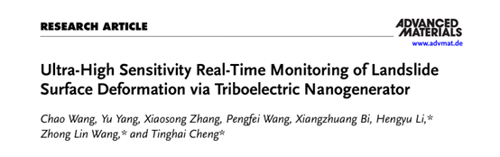 近日,我校机械工程学院汪超副教授团队与中国科学院北京纳米能源与系统研究所程廷海研究员课题组合作在TOP期刊《Advanced Materials》上发表了题为“Ultra-High Sensitivity Real-Time Monitoring of Landslide Surface Deformation via Triboelectric Nanogenerator”的研究论文。该成果以九九精品视频一区在线久久久久久久久久毛片精品美女|国产99久久久久久免费看|中文精品99久久国产|国产69精品久久久久9999|精品久久久久久中文字幕无码|亚洲熟妇无码久久精品国产精品99|精品国产天堂综合一区在线机械工程学院为第一署名单位,汪超副教授为第一作者,机械工程学院研究生杨宇为共同第一作者,纳米能源所程廷海研究员、王中林院士、李恒禹博士后为共同通讯作者,研究得到广东省基础与应用基础基金项目等项目资助。